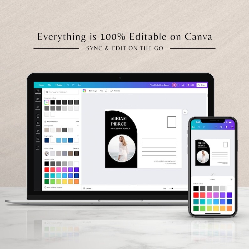 - Sync & edit on the go (compatible with any device with free Canva app)