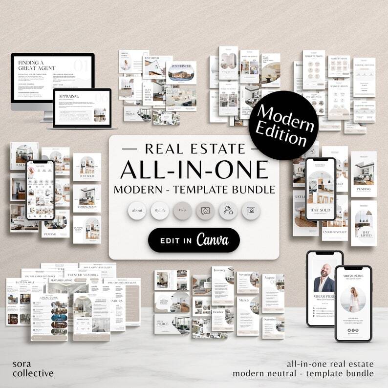 All-In-One Modern Real Estate Marketing Templates Bundle, Real Estate Social Media, Real Estate Instagram, Buyer Seller Guide, Realtor Flyer