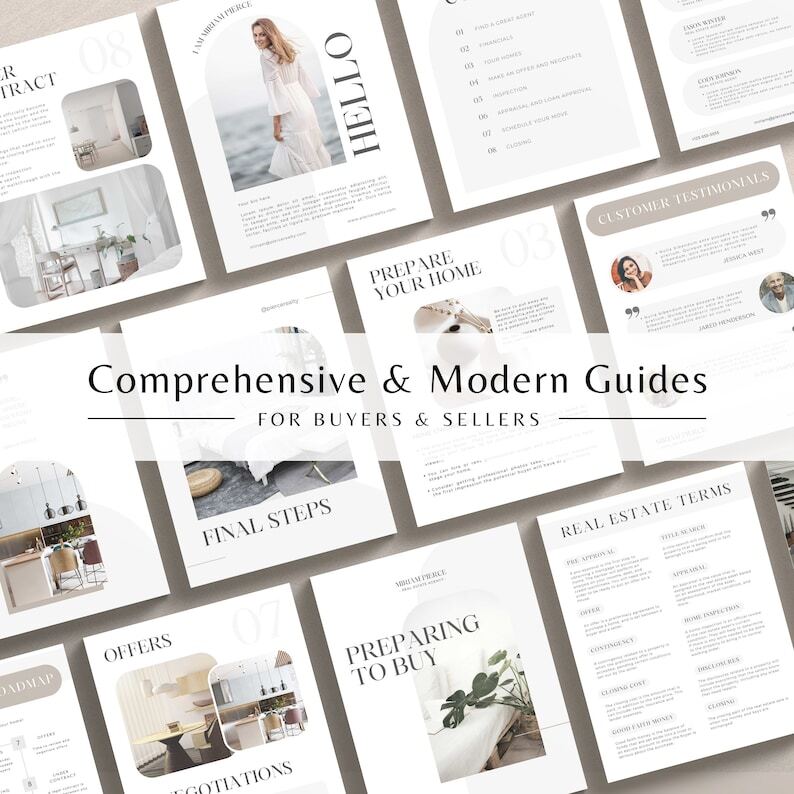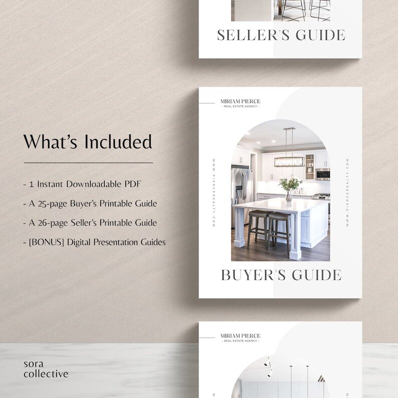 Our Buyer & Seller Real Estate Template Guides Includes: • 1 downloadable PDF immediately upon purchase • A 26-page Printable Guide for Real Estate Sellers • A 25-page Printable Guide for Real Estate Buyers • BONUS: Digital Presentation Guides for Sellers & Buyers • Helpful Guides & Checklists • Customer Support Available